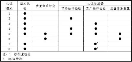 國(guó)際上通用的認(rèn)證模式為八種,具體可歸納為下表: